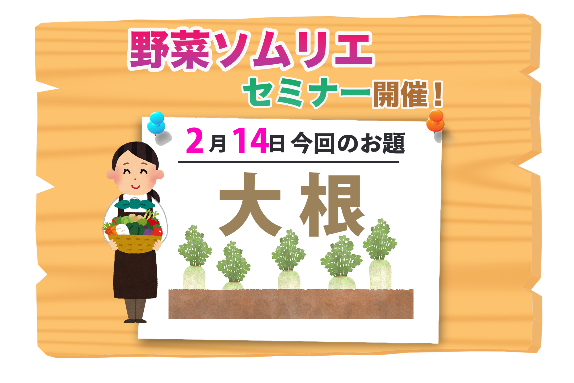 毎回テーマに沿って行われる来場者限定の「野菜ソムリエプチセミナー」を開催して不思議な力を持つ野菜や果物の魅力、その時の食材を使った簡単レシピについても学べます。